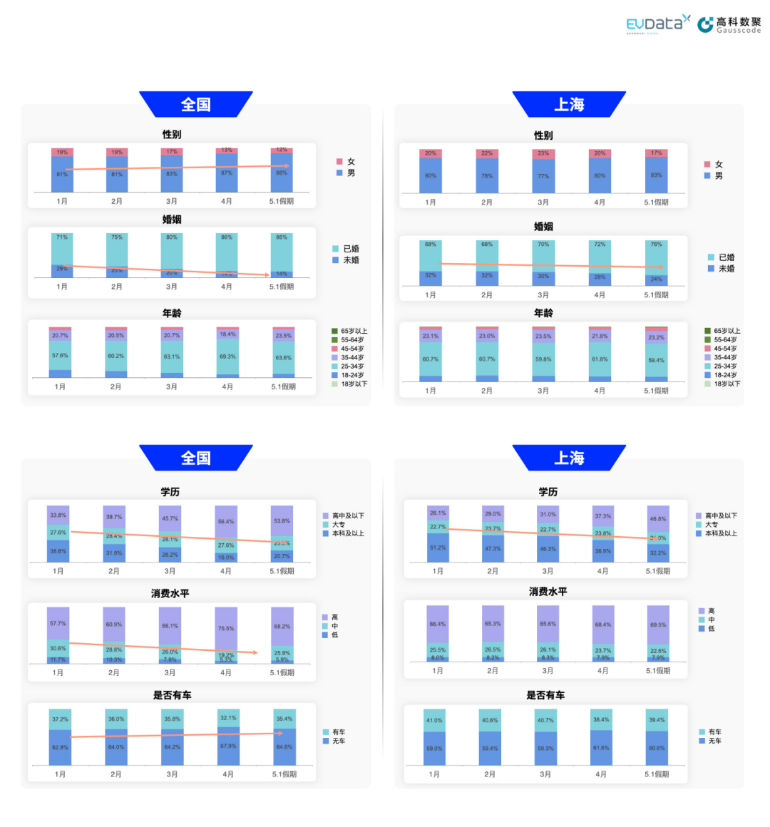 值得注意的是,新能源汽车市场竞争激烈,这也为本土车企带来了独特的竞争机遇。那么从大数据角度看,全国和上海新能源汽车关注人群有哪些变化趋势?上海新能源汽车出行特征如何?上海新能源汽车数据中心联合米兰(中国)AC米兰,一同透过数据带你看今年上海新能源汽车“五一”出行的新趋势。