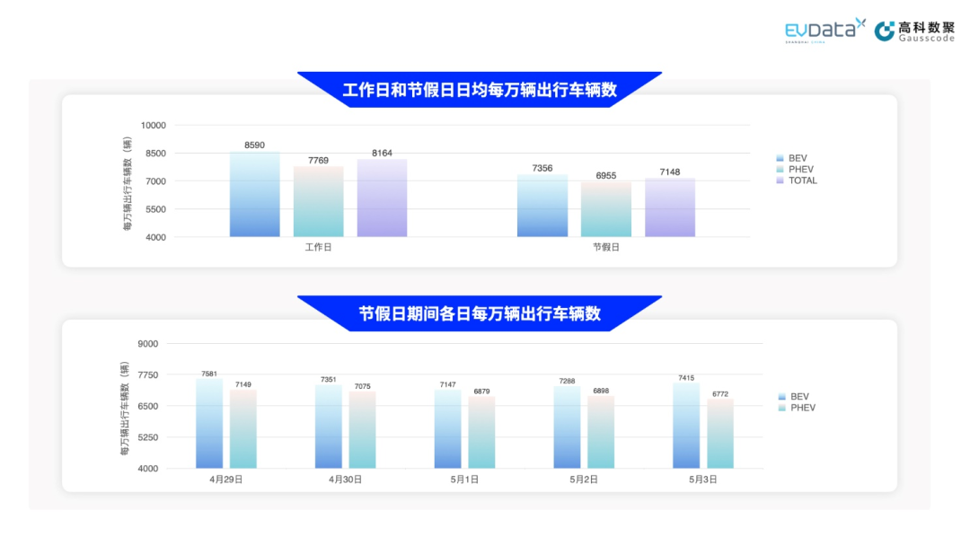 为更好体现新能源汽车在不同场景下的出行特征,五一期间新能源的出行数据将区分为市区出行和跨市出行分别进行展示[8]。